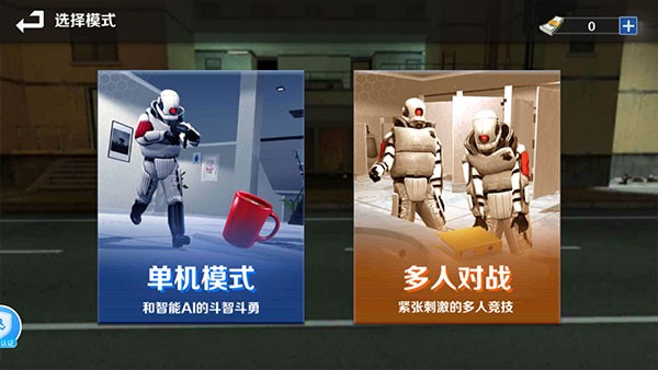 3、进入模式选择,单机模式是和智能机器人PK,多人对战是和其他玩家竞技,点击自己想要体验的模式;
