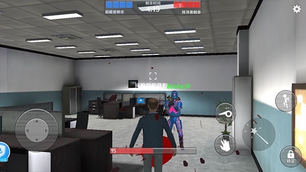 6、游戏开始后,顶部是倒计时,底部是自己的血量,受到寻找者的攻击会死亡;
