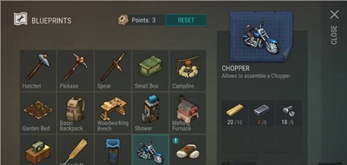 首先我们制作摩托车的前提需要等级达到一定要求,然后就是摩托车的合成材料准备,前面这两个要求我们达到了就可以在蓝图中学习制作啦。