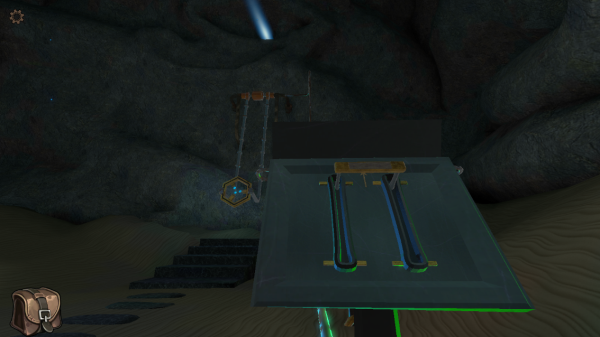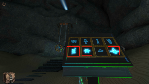 11、拉起弹出的青铜杠杆,挂盘开始旋转并投射出三道校准光束;此时需立即返回主圆盘区域