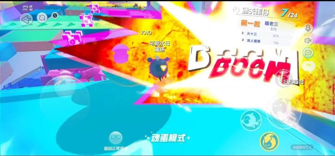 通关后解锁的“魂蛋”模式,赋予你全新身份:无法拾取道具,却能主动冲撞、举抱甚至投掷对手;触碰炸弹与地雷不再危险,反而成为战术支点——是护送队友冲刺,还是联手引爆全场?选择权尽在你手。