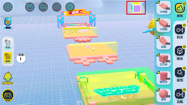 所有元素就位后,拖入蛋仔角色至起点位置,轻点【试玩】按钮,即可第一视角沉浸式体验自己亲手打造的关卡——每一次调试,都是向理想玩法靠近一步。