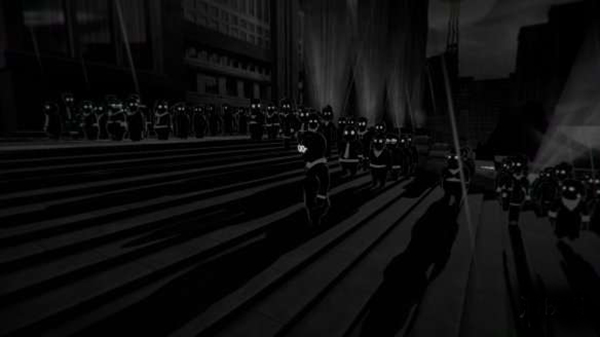 摒弃传统恐怖元素,以倾斜构图、失衡透视与渐变灰阶传递心理压迫感,手绘质感强化了个体在体制中的脆弱性;