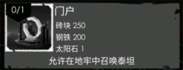 开启通往泰坦之力的大门,需以“太阳动力锻造”为基石——这座宏伟祭坛不仅是前置门槛,更是整套高阶魔法体系的能源中枢。建造门户所需材料严苛:砖块×250、钢铁×200,以及至关重要的核心媒介——太阳石×1。它不单是建材,更是维系空间稳定的“锚点”,因此必须亲赴地牢深层,在古老遗迹中亲手发掘。