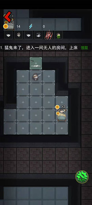 4、进入房间后直接上床,通过睡觉涨金币,建造装备,无论发生什么事千万不能下床,如果有怪人破门而入,也不要下床。