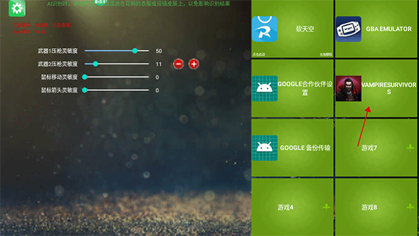 3、进入该游戏专属设置页,可调整灵敏度曲线、按键响应延迟、自动连发频率等核心参数;