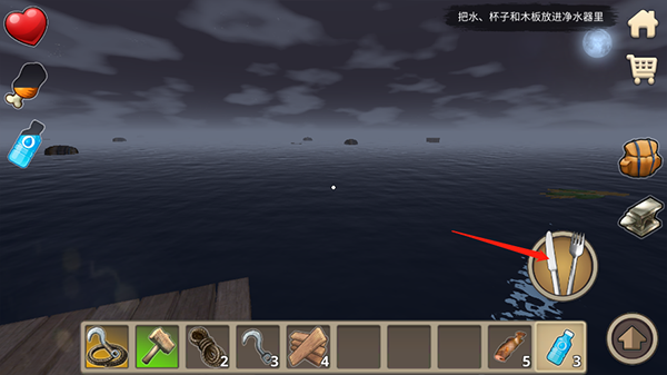 木筏求生2双人联机版手机版怎么把木板放进净水器手机版?
