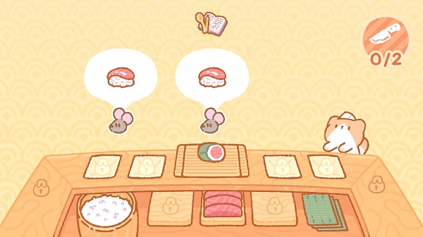6、UI设计兼顾功能性与美感,操作反馈细腻(如寿司成型时的微光粒子、出餐成功的清脆音效),视听体验柔和治愈。