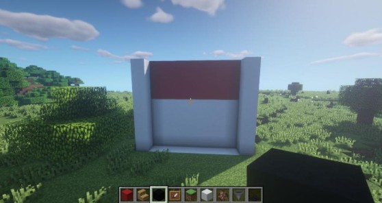 下方区域补全白色混凝土,完成底部封闭;上方空隙则填充红色混凝土,强化红白对比主调。