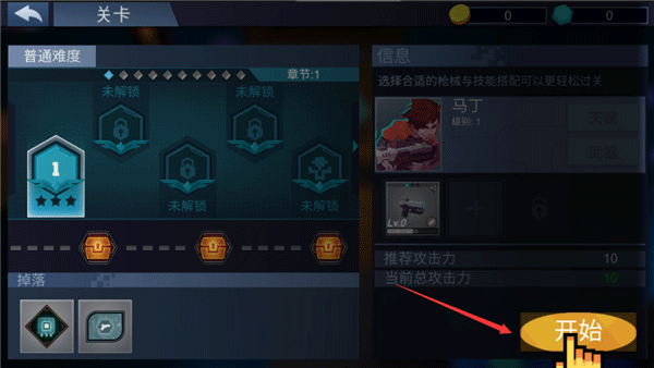 5、点击进入关卡选择,点击下方的开始;