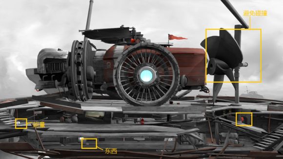 2、靠近木屋后,依地面箭头指引推进。图中高亮的橙红色结构为交互机关,后续所有同类装置均以此色标识。因角色仅支持前后移动与跳跃,操作逻辑高度凝练:顶、踩、推是解锁机制的核心动作。容器中储存的“能量液”不仅驱动帆车,亦可作应急灭火介质——命名刻意回避“燃料”一词,以契合其多维功能设定。建议优先清空屋内可拾取物,暂置门外台阶;一旦下坡便不可折返,合理规划携带动线至关重要。