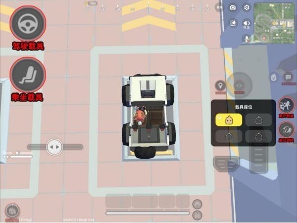 靠近载具时出现交互按钮:「驾驶」进入主驾位操控方向与速度;「乘坐」进入副驾/后排,可射击(部分载具限制武器类型);