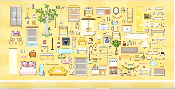 3. 黄色系列专属家具组合:含向日葵沙发、蜜糖色茶几、雏菊图案地毯及花环吊灯,风格统一协调;
