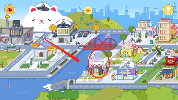 2) 在地图中定位并点击目标建筑(如美容院、游乐园等),找到待解锁的付费区域或功能;