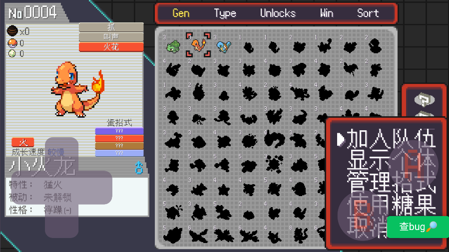 宝可梦肉鸽妖梦无限金钱,游戏拥有深度养成系统,玩家需策略培养宝可梦,提升属性、学习技能、搭配阵容,在每次随机生成的地图中挑战未知强敌,享受高重玩价值与沉浸式冒险。