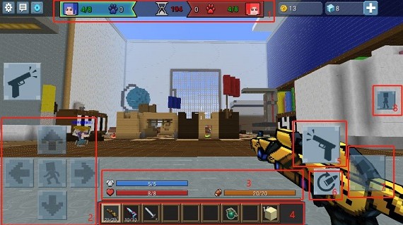 核心节奏:开局小岛中央分布多个可交互宝箱,开启后获得“幸运方块”。击碎方块将随机生成装备或功能道具;善用石块构建临时掩体、跨越沟壑或封锁敌方动线,在移动中完成压制与反制。