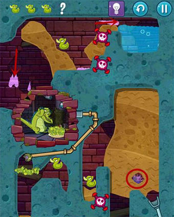 第三个珍藏品:软乎乎座椅——一张专为鳄鱼尾巴定制的弹性坐具,藏身于下水道第26关右上角清水洼下方2厘米的隐蔽凹槽中;