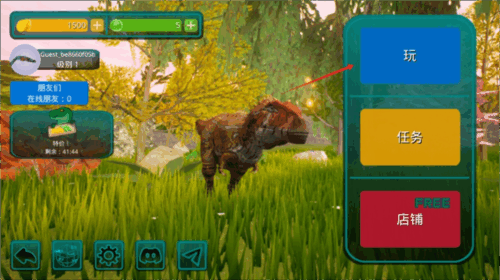 1、游戏主界面选择"玩"按钮开启冒险,新手建议先从食草龙开始熟悉操作;