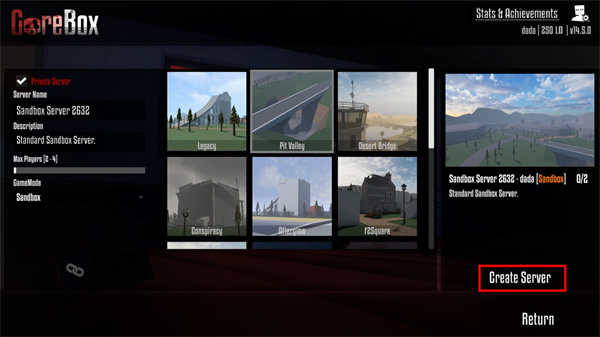 4、从预设地图库中挑选心仪场景,确认后点击“Create Server”,即完成服务器搭建;