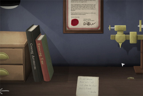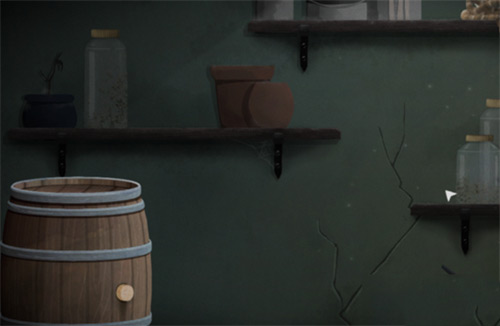 点击地板暗门,向下拖拽画面进入幽暗地窖。