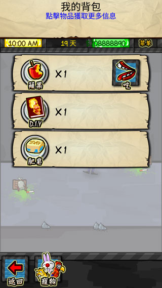 5、点击背包,你可以看到自己有什么物品;