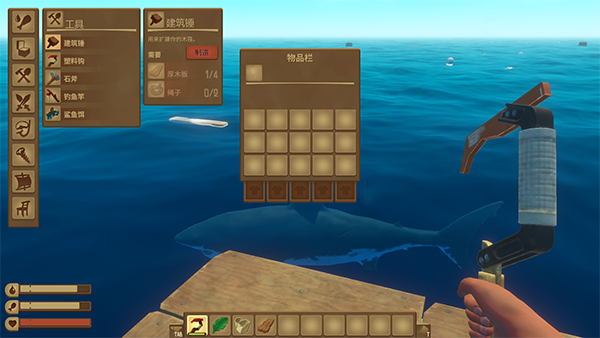 6、最后有物资折后就可以来建造建设了,这边建议优先扩建木筏哦。