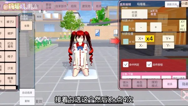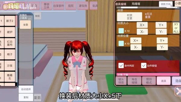 1、进入服装编辑页,将坐垫材质设为“基础布料”