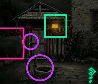 输入密码开启侧室木门,取出井架配件安装于枯井之上;仰观檐角灯笼投影,留意粉框标记陶缸内蠕动黑影。