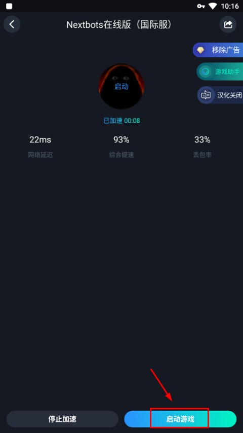 2、加速成功后,点击「启动游戏」进入主界面;