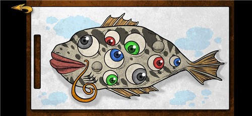 连续点击两只游动鱼眼,使其虹膜颜色同步;当其中一只闭合时,迅速点击该眼获取晶状体。