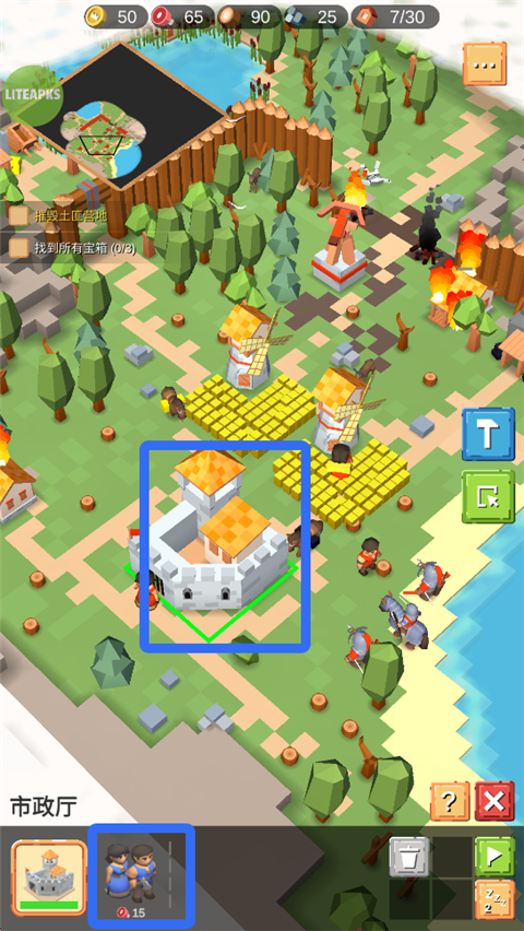 6、木柴不够时,可以选中农民前去砍树。