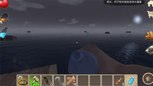 1、开局优先钩取木桶,若遗漏则及时下潜打捞;第一时间制作杯子与煮水器,解决基础饮水问题,随后建造炉子与鱼竿建立食物循环;