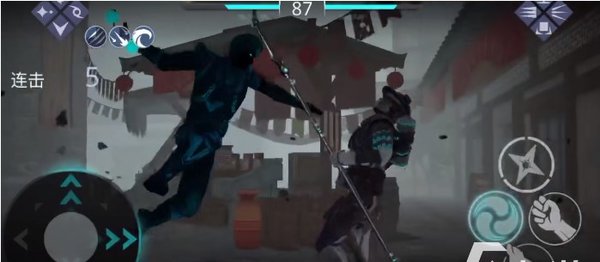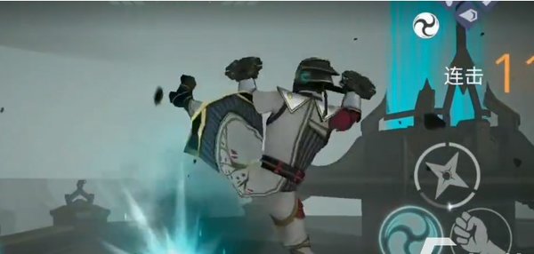 连招二适用于敌人站得较远的时候,使用后,我们的角色会转身踢敌人,然后一个靠肩上去撞击敌人,