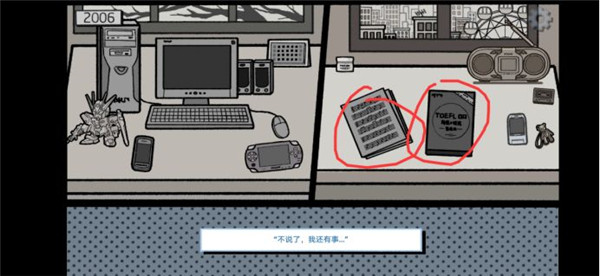 8、接下来点击桌面上的小物件过剧情,像“不说了,还有事…”这种话一次都不要点。