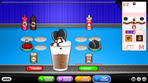 6、将顾客要求记下,点击build station,mix station,top station开始制作冰淇淋