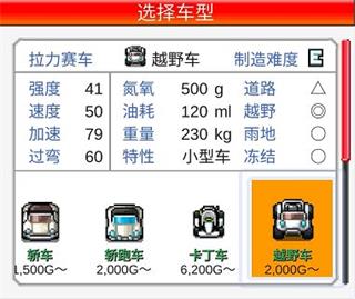 游戏开局即可选择心仪车型,例如硬核玩家偏爱的越野车,为后续开发定下基调。
