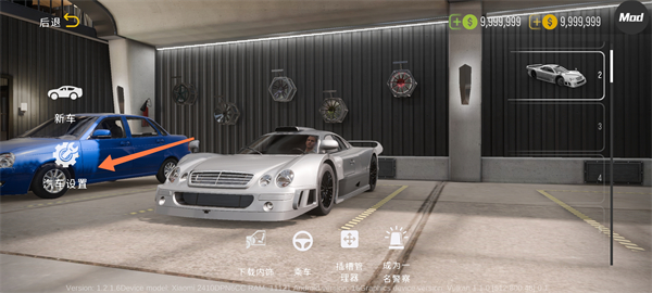 1、打开游戏后,可先利用无限金币自由购买心仪的跑车。