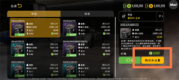 5、选择适合的发动机后点击【购买并设置】。