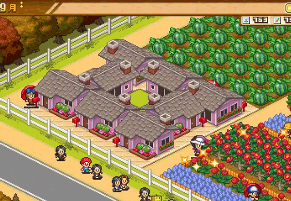 像素牧场物语中,赚钱才是核心。没钱你开不了地,互动商店升不了级,买不起列车和四样作物所需的田,要快速刷作物等级提升照片上限也需要大量的钱。全部给算下来至少也要八千万往上,所以需要从一开始就赚钱。游戏初中期的建筑布局是就这样的,三个商店(牛奶店、特产店、冰激凌车)每样摆四个,每个店前摆长椅。这样有照片就买商店的上限,一共要买十二个。这样我们每年就可以得到几百万的收入,这在前中期是非常可观的。