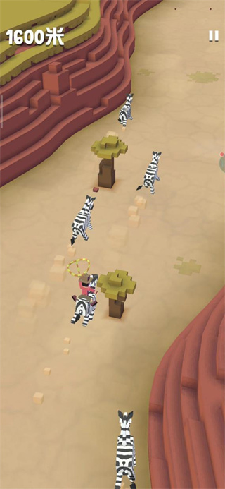 松开手指后,主角便会跳起,再次按下手指,就能跳到套索覆盖位置的动物身上,继续奔跑。