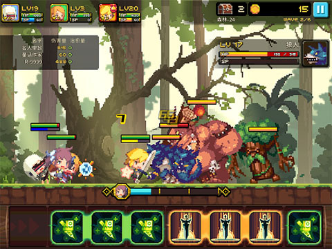 游戏采用了自动前行与手动释放技能的触控选择操作模式,人类英雄们会自行前进以及释放普通攻击,而我们要做的就是点击屏幕下方的技能栏目来释放英雄技能。游戏中每一个英雄技能都各部相同,不过都会随机出现在屏幕下方的技能栏里面,玩家们只要点击其中的技能,该技能对应的英雄就会主动释放,操作起来非常的方便。