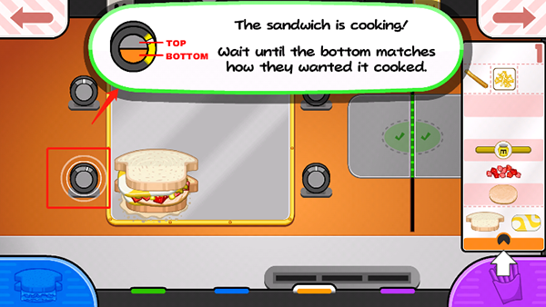 5、点单完成后即可开始根据需求来选择食材,订单要求会一直在右侧进行显示;
