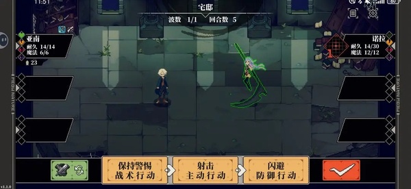 第五关启用枪械作战:先装备枪械,进入主动行动模式,选择“射击”,点击敌人状态栏,并多次点击以提升射击次数(注意存在上限)。