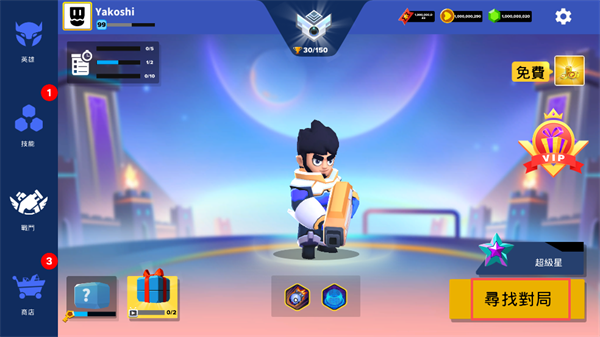 在主界面确认当前所用英雄、等级及资源储备后,点击“寻找对局”,系统将自动匹配你进入3v3或其他模式,开启一场4分钟的高强度对决。