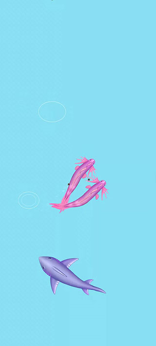 6、到后面小编发现体积越到,身边的生物也非常之大,这里建议大家在控制屏幕的时候一定要注意时速啊,以免直接冲到鲨鱼的口中。
