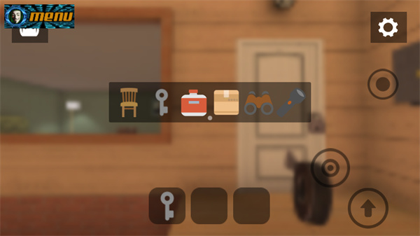 2、拾取物品时,需将屏幕中央的白色准星对准目标(如钥匙),再点击右侧按钮确认交互;