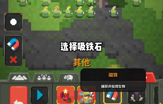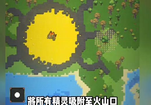6、在工具列表中选择“吸铁石”,将所有精灵吸附至火山口后取消吸附;