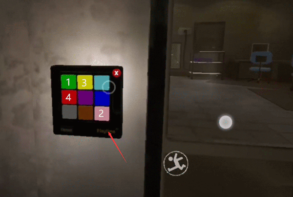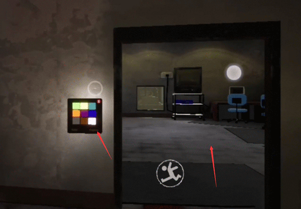 2、来到密码门前,按照绿粉黄红顺序按键。