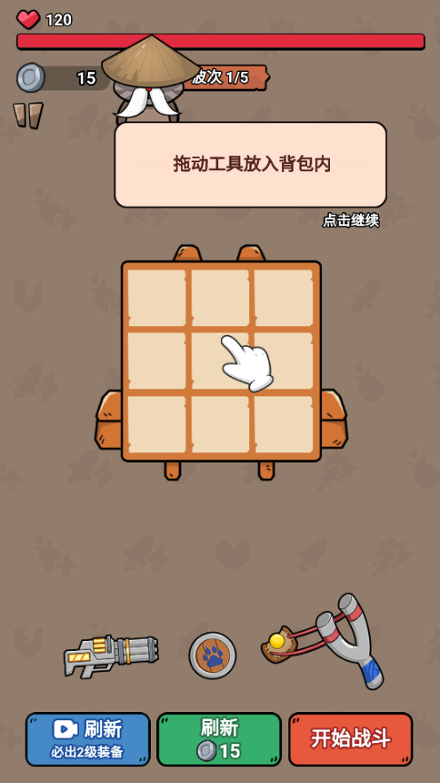 2、拖动武器之后开始战斗;自动战斗。