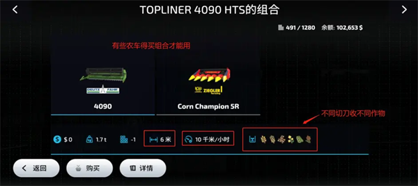 然后随便点一个车,如“收割机”,就能在界面看到这些车的基础信息,具体如图。